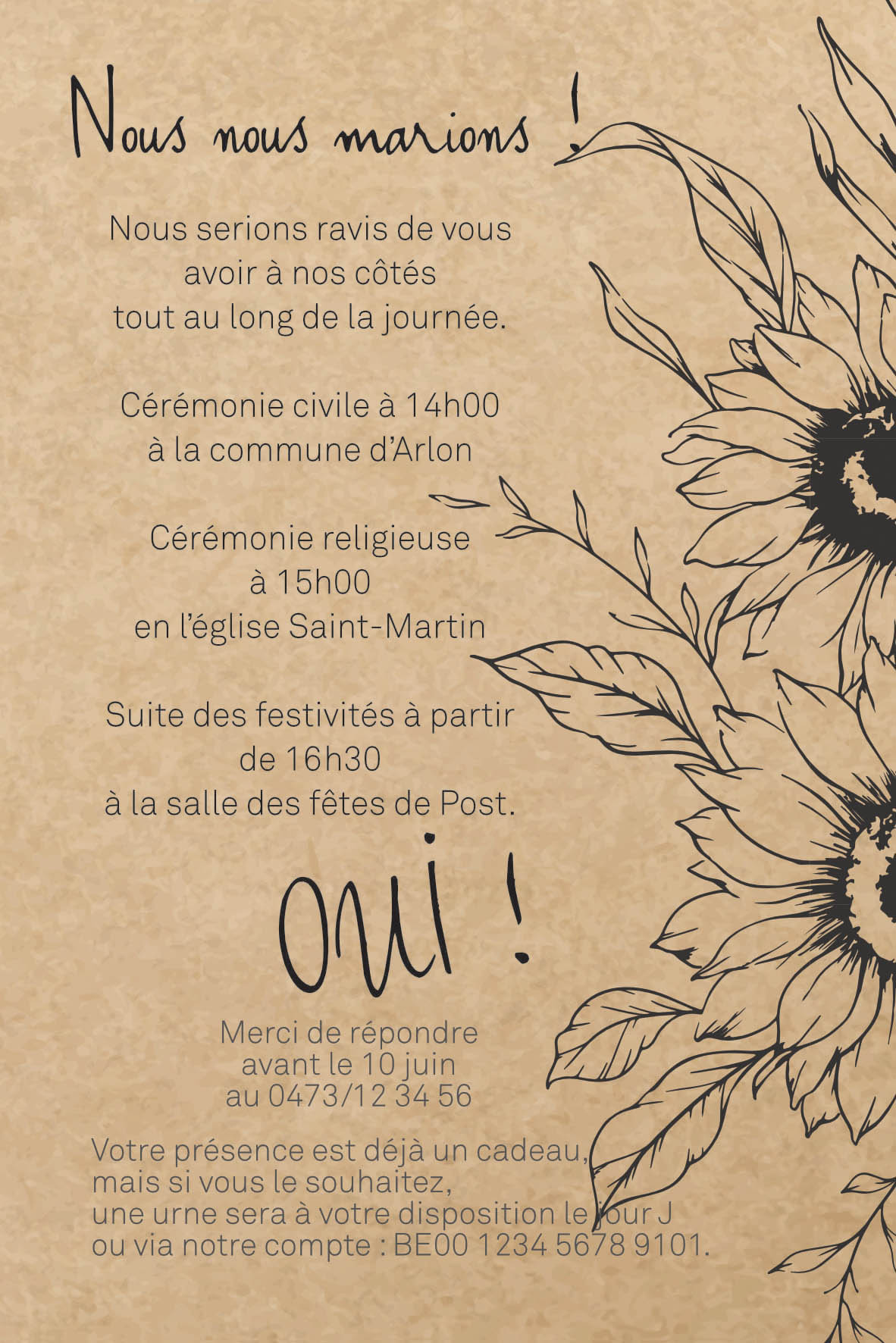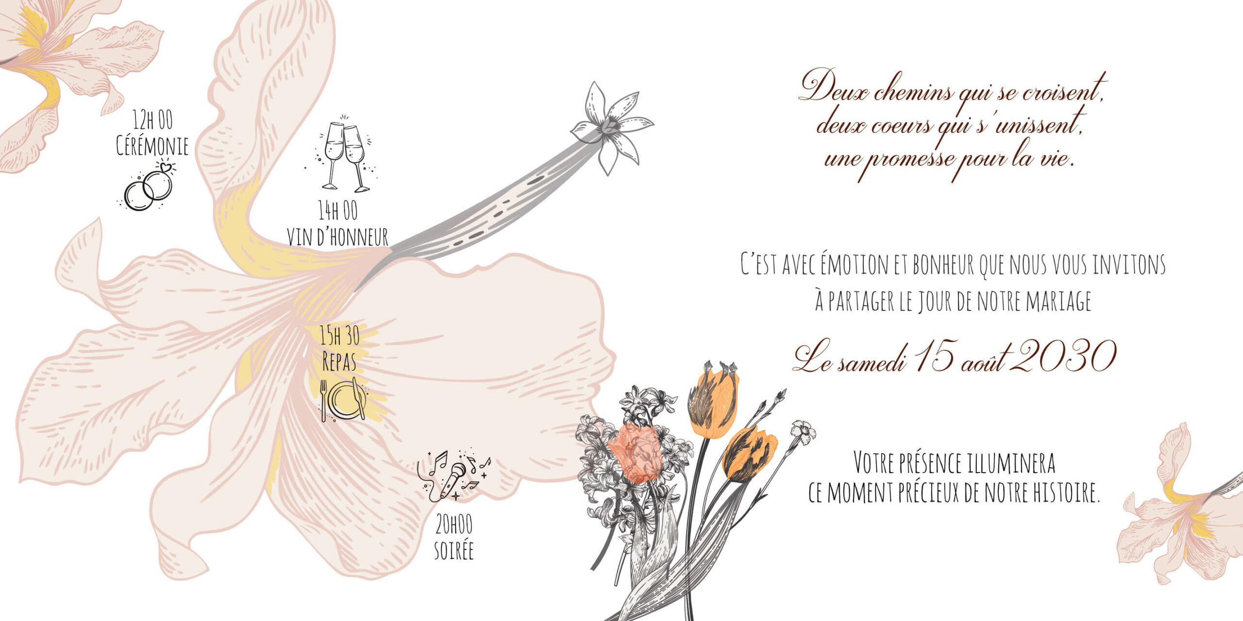 Nous réalisons celui-ci selon vos envies, vos couleurs… Bref, votre invitation est à votre image.